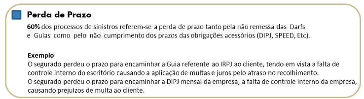 • Perdas Financeiras decorrentes de Sinistros Cobertos (perdas financeiras cobrem os erros decorrentes da atividade profissional, por exemplo, erro no cálculo, perda de prazo);